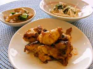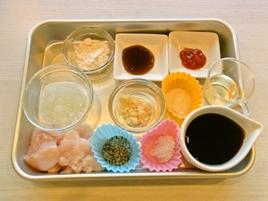 1.鶏肉を一口大に切り、塩・黒胡椒を振ってAのたれに30分ほど漬けておきます。