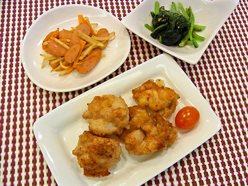 1.ボウルに一口大に切った鶏肉とAを入れてよくもみ込み、10分位置いておきます。