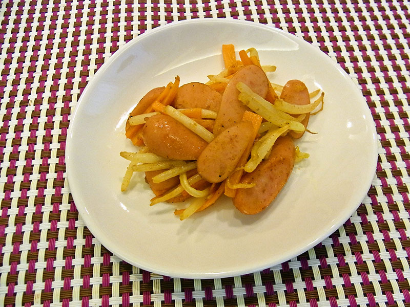 1.にんじんは千切り、ウィンナーは斜め薄切りにします。