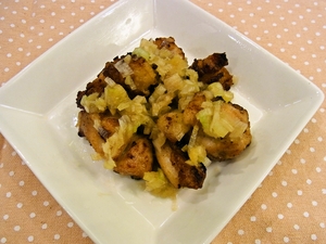 5.4.の荒熱が取れたら、ねぎソースをからめます。